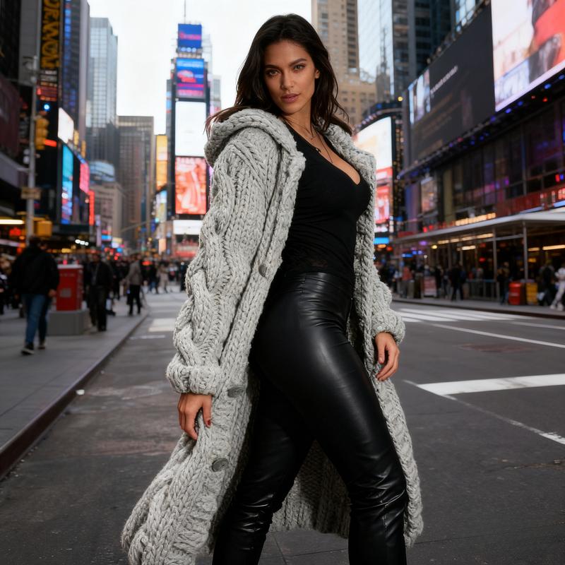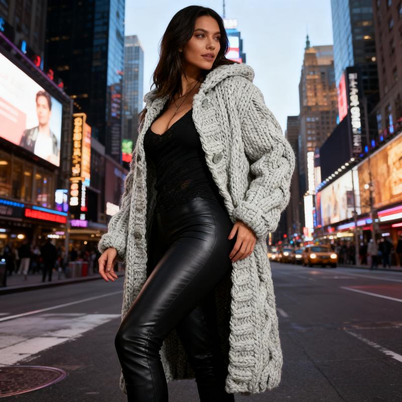 Women'S Chunky Knit Cardigan Coat Hooded with Large Buttons Pockets Super Warm Winter Essential Cold Weather Must Have Winter Outings Daily Wear Trendy US Fashion Cable Knit Comfortable Cozy Outerwear